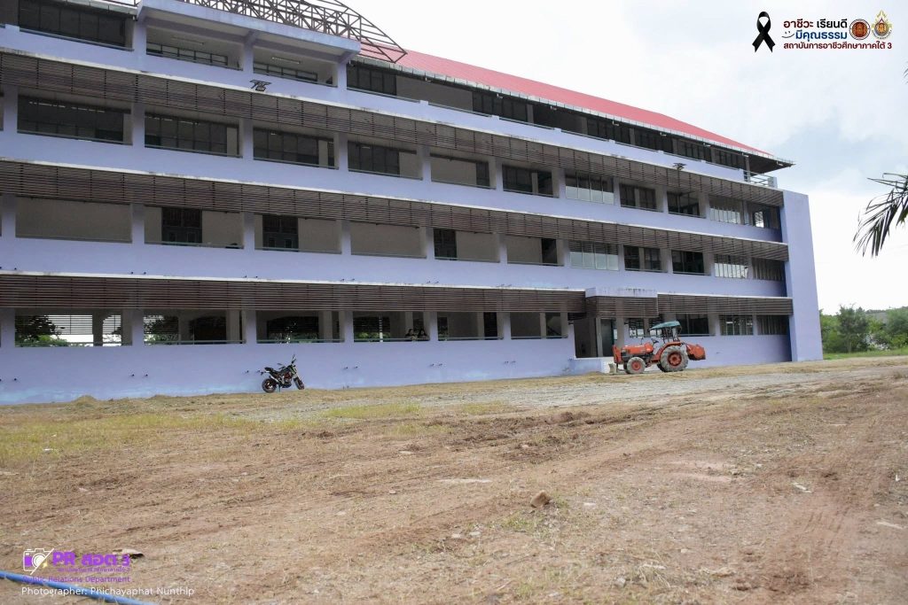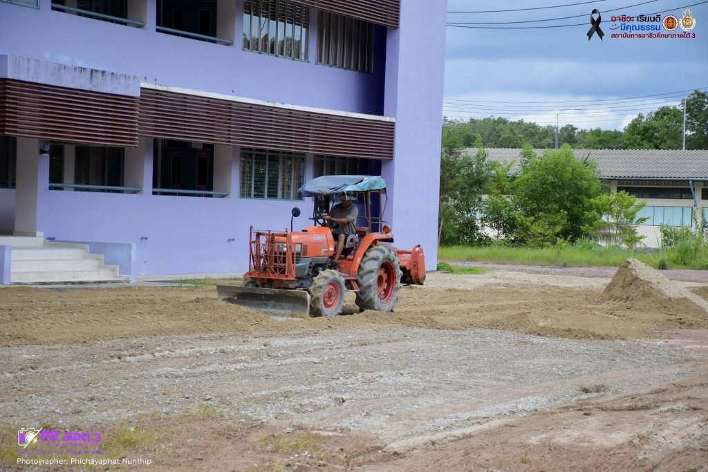สถาบันการอาชีวศึกษาภาคใต้ 3 ดำเนินการปรับพื้นที่เตรียมจัดกิจกรรมทำบุญสำนักงานแห่งใหม่ ต่อเนื่องเป็นวันที่ 2