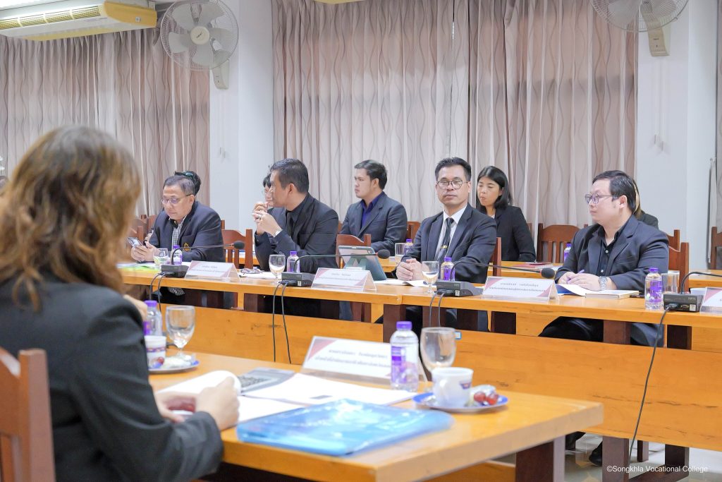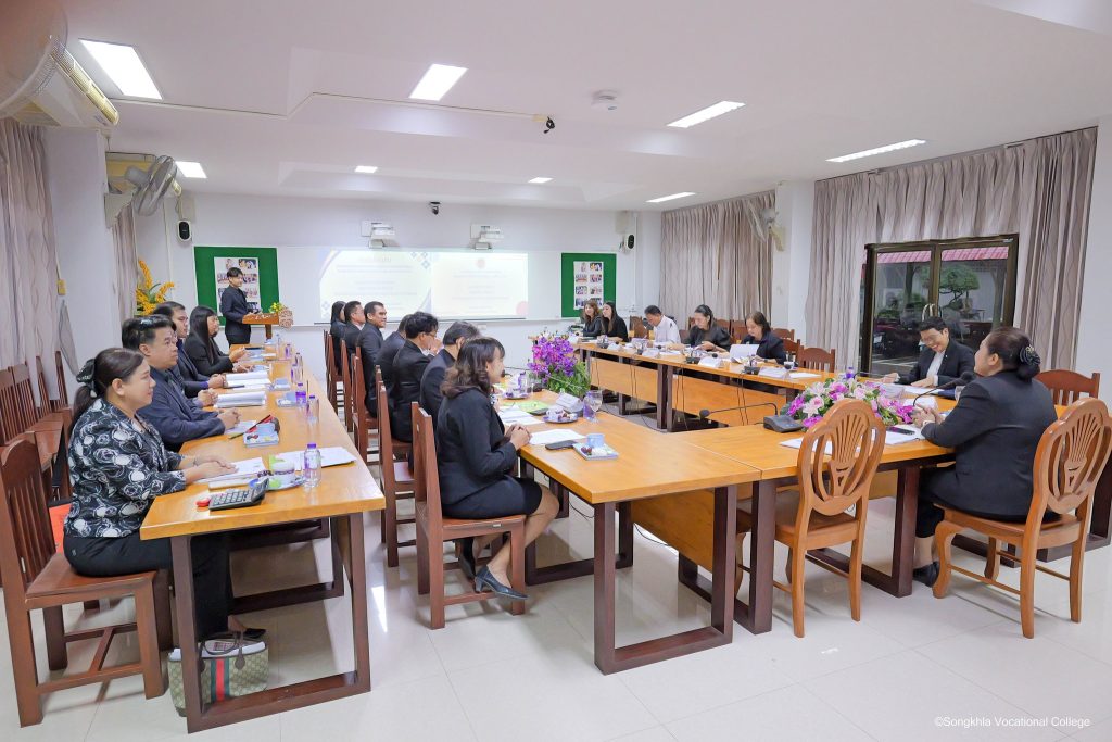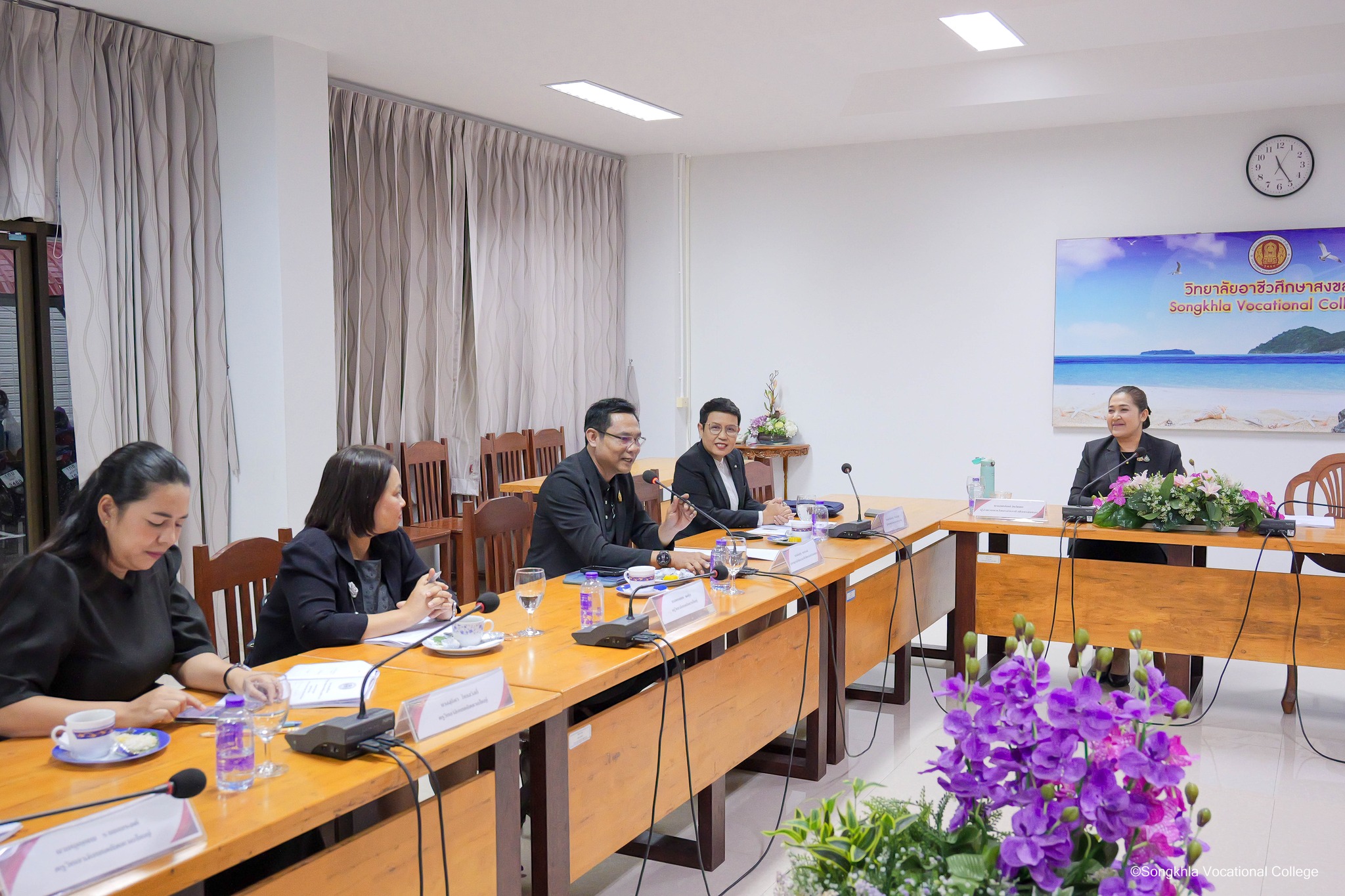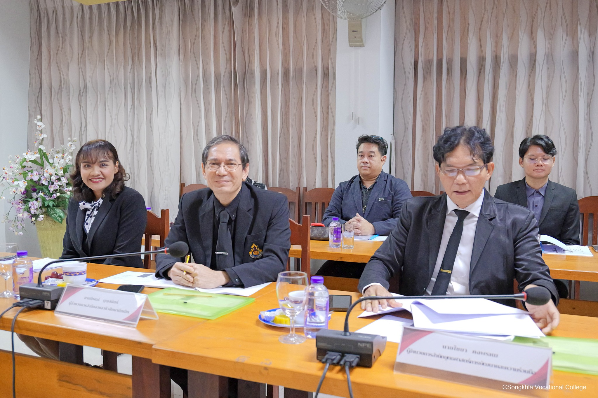 ในการนี้ เป็นการประเมินความพร้อมของหลักสูตรประกาศนียบัตรวิชาชีพชั้นสูง (ปวส.) สาขาวิชาภาษาและการจัดการธุรกิจระหว่างประเทศ ประจำปีการศึกษา 2569 ณ ห้องประชุมอินทนิน วิทยาลัยอาชีวศึกษาสงขลา