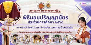 ณ #อาคารกิติยาคาร #มหาวิทยาลัยธรรมศาสตร์ #ศูนย์รังสิต ทั้งนี้ รายละเอียดเกี่ยวกับกำหนดการ ขั้นตอนการเข้ารับปริญญาบัตร การแต่งกาย และแนวปฏิบัติอื่น ๆ สถาบันการอาชีวศึกษาภาคใต้ 3 จะประชาสัมพันธ์ให้ทราบในโอกาสถัดไป ขอให้บัณฑิตติดตามข่าวสารจากช่องทางการประชาสัมพันธ์ของสถาบันอย่างต่อเนื่อง