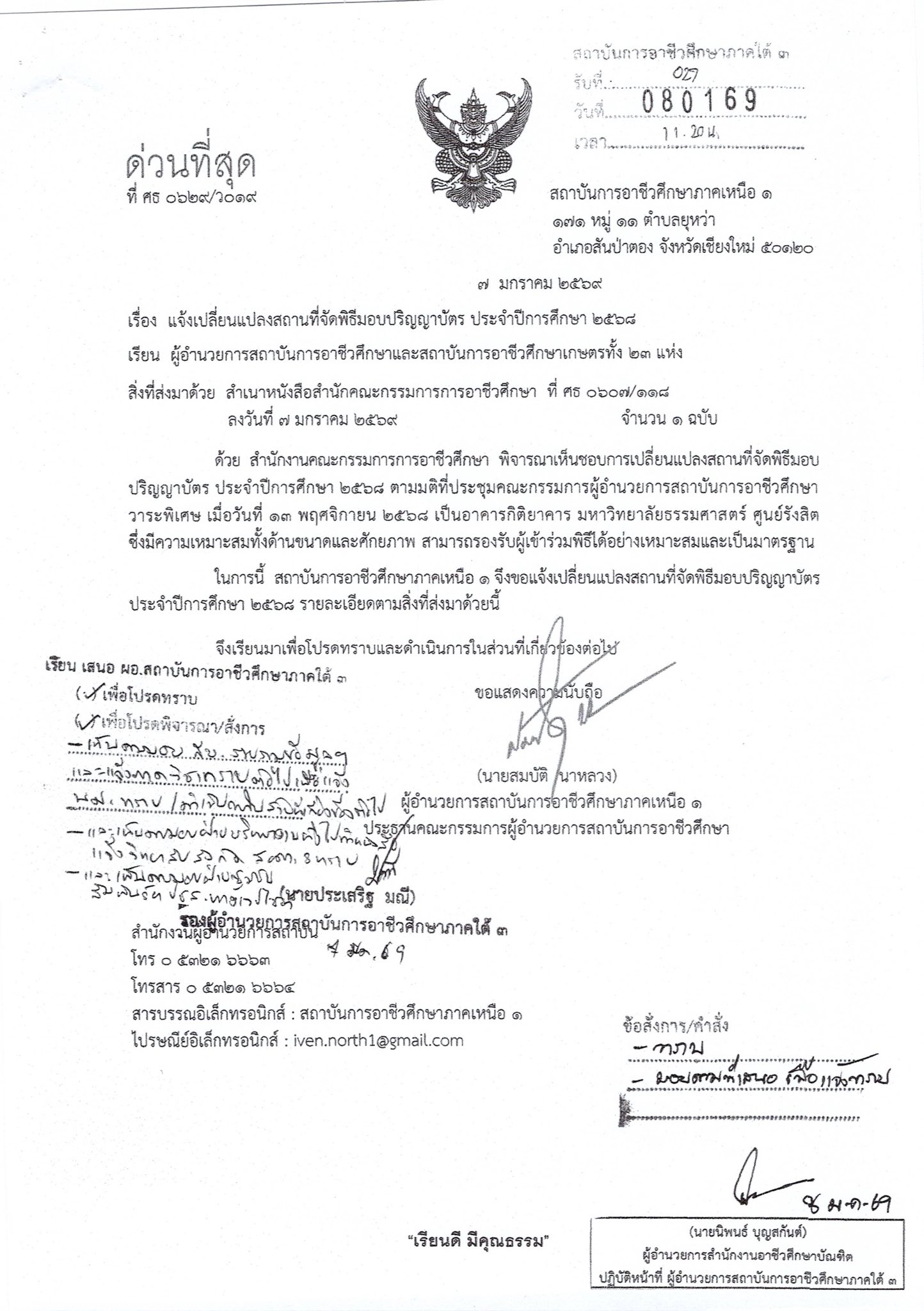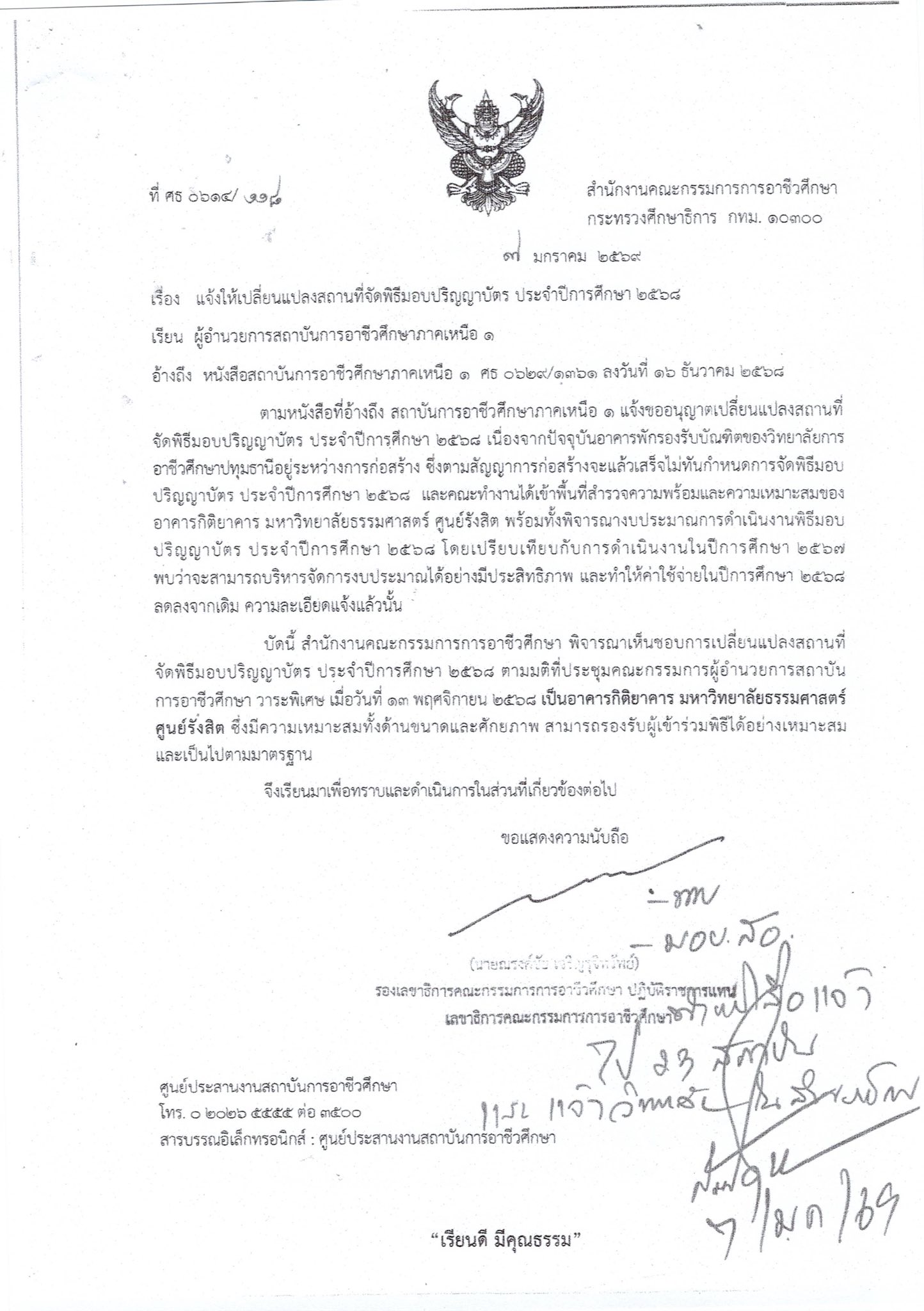 . ในการนี้ สถาบันขอแจ้งให้ทราบว่า การจัดพิธีในปีการศึกษา 2568 ได้มีการเปลี่ยนแปลงสถานที่จัดงาน