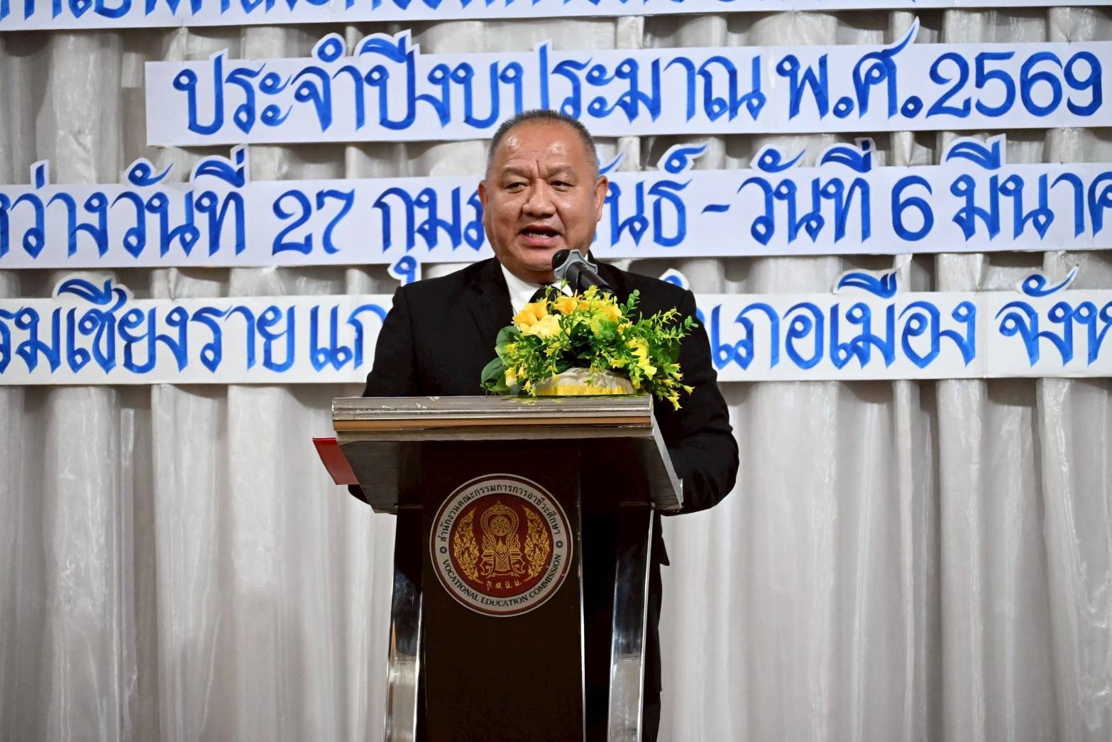 โดยมี นายยศพล เวณุโกเศศ เลขาธิการคณะกรรมการการอาชีวศึกษา เป็นประธานในพิธีเปิดฯ พร้อมด้วย นางเบญจวรรณ ปกป้อง ผู้อำนวยการสำนักอำนวยการ ดร.อรพิน ดวงแก้ว ผู้อำนวยการวิทยาลัยอาชีวศึกษาเชียงราย และผู้อำนวยการสำนักงานอาชีวศึกษาจังหวัด พร้อมคณะผู้บริหาร เข้าร่วมในพิธี โดยมีนายวรวุฒิ ดำขำ ผู้อำนวยการกลุ่มนิติการ กล่าวรายงานวัตถุประสงค์การจัดโครงการฯ